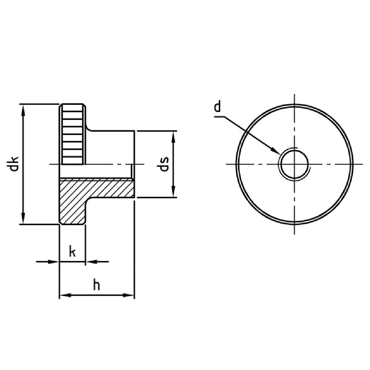 Die Mantelfläche ist mit einer Kreuzrändelung versehen, die maximale Griffigkeit bietet. In Edelstahl A1 ist sie nicht nur funktional, sondern auch optisch ansprechend und dauerhaft rostfrei – ideal für Anwendungen, bei denen Hygiene oder Design eine Rolle spielen.